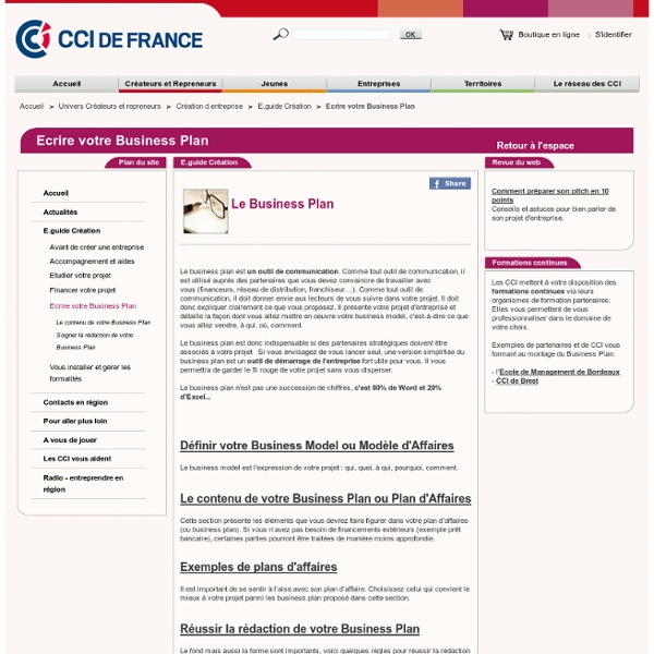 Le statut de lauto entrepreneur. Ces exemples de business plan de création dentreprise constituent une base pour présenter votre projet et le mettre en forme dans les meilleures conditions.