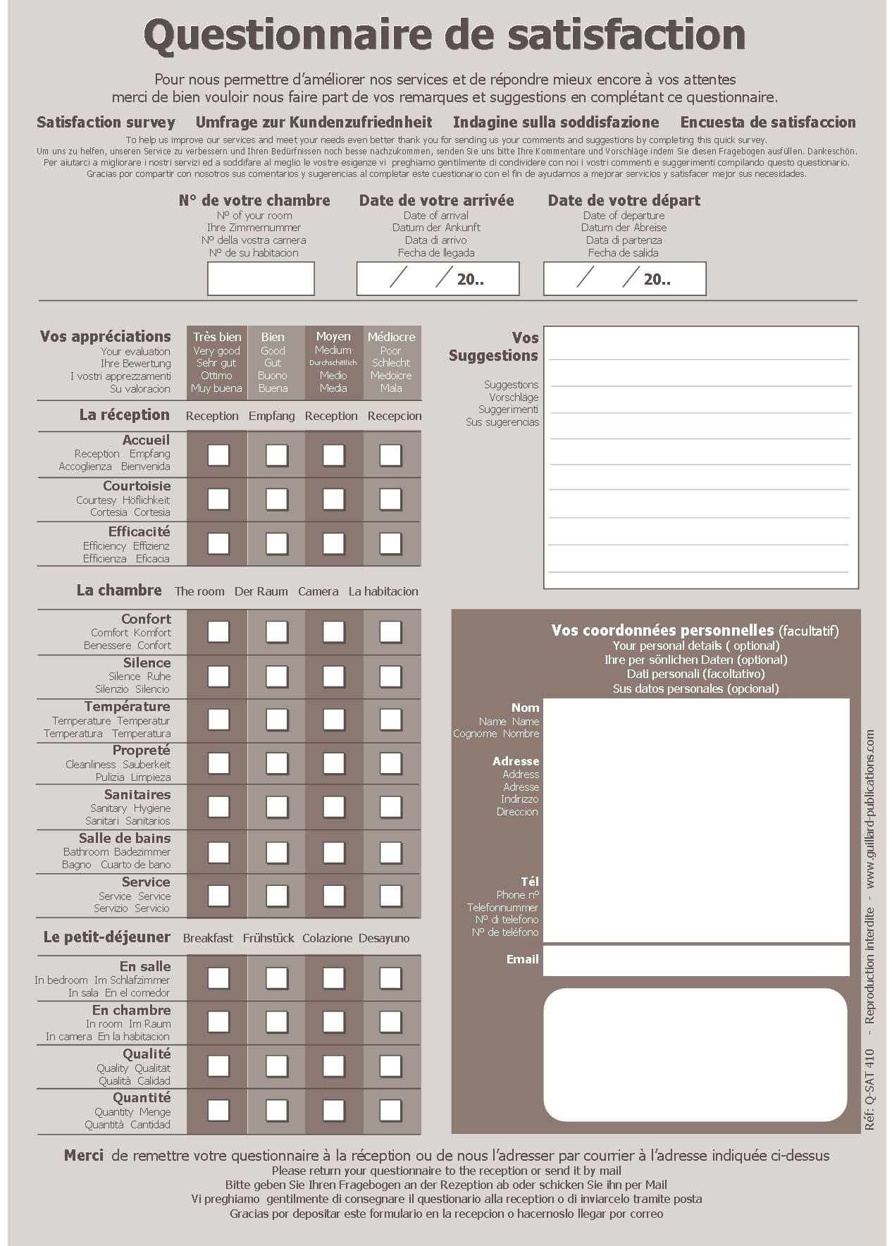 Hotel Questionnaire De Satisfaction Pour Hôtel Qsat250