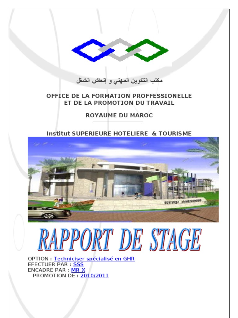 Rapport De Stage Cuisine Ofppt Gratuit Pdf Word Agent De