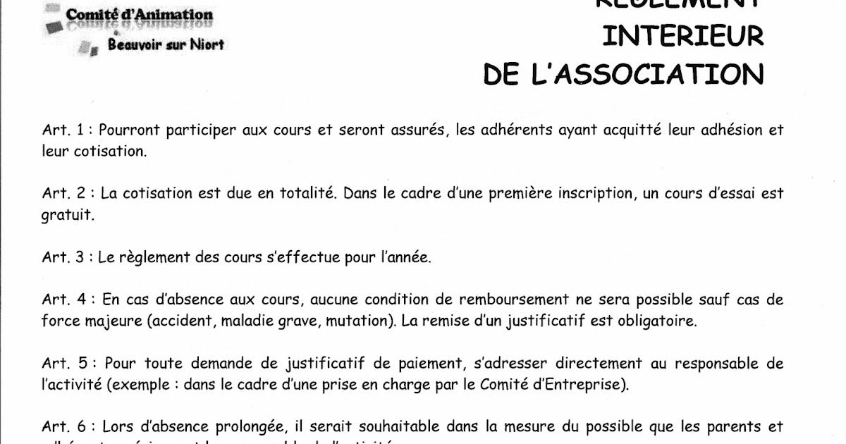 Ce que vous cherchez - Règlement Intérieur Comité D Entreprise Exemple.  -