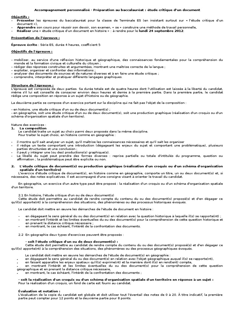 Méthodologie De Létude Critique De Documents Sujet Guidé